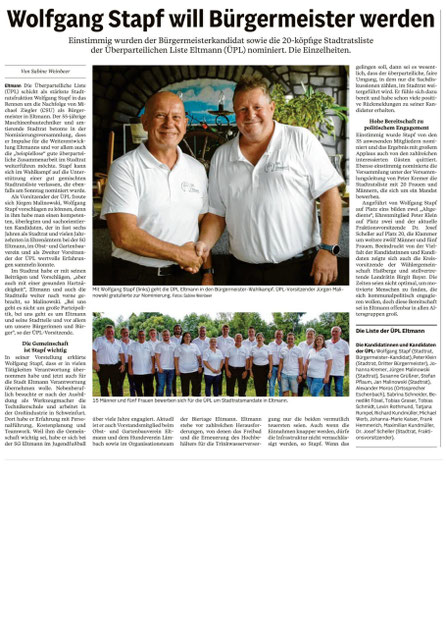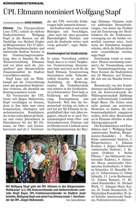 Mit Wolfgang Stapf geht die ÜPL Eltmann in den Bürgermeister-Wahlkampf.